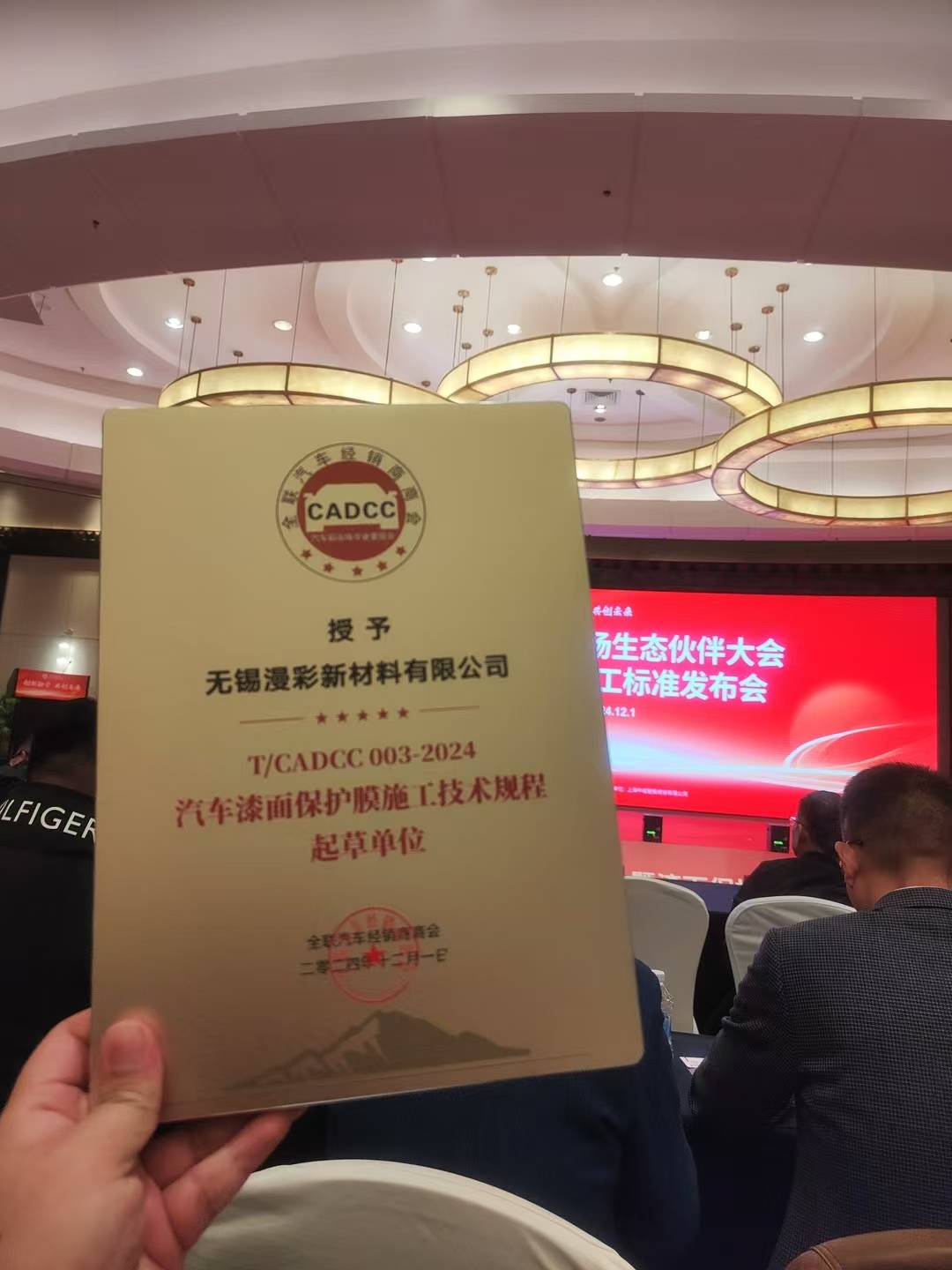 漫彩作为轿车保护膜施工作业规程的起草单位,漫彩在 2024 轿车后商场生态同伴大会上重磅露脸。其参加拟定的 T/CADCG 003-2024《轿车漆面保护膜标准》文件,为轿车后商场职业树立了新的标杆,引领着轿车漆面保护膜范畴向标准化、标准化方向继续跨进。